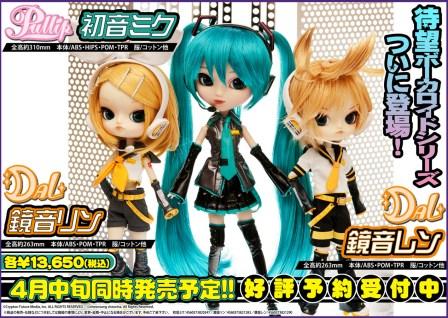 4月発売のプーリップと、ダルはなんと見ての通りあのVOCALOID、01と02の初音ミク&鏡音リンレンです!