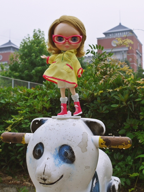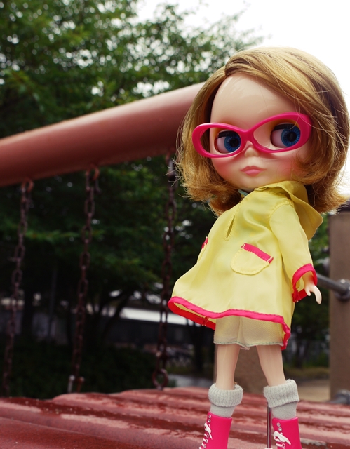 雨が降りそうなので、レインコートを着て探検に出ました。