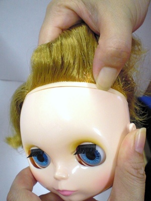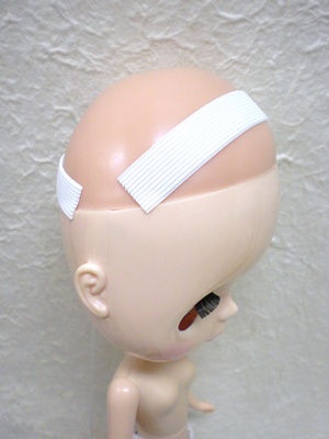 こちらのウィッグはヘア有り用のブライスサイズウィッグですので、若干大き目で、後頭部が余ってしまいますが、ウィッグ固定テープによって、ずれることなくかぶせられます。うふ❤
