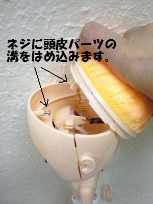 他の頭皮パーツをはめる時は、再度ネジを外して取りつけて下さい。